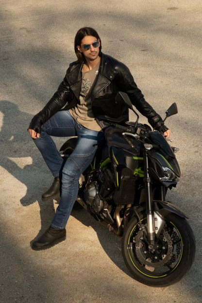 Kožna jakna od visoko kvalitetne jelenje kože. Zakopčava se kosim rajsferšlusom i drikerima. Jakna ima višu kragnu koja se zatvara drikerom. Jedinstveni dodatak koji jakni daje dodatnu vrednost su rukavice koje se mogu skinuti rajsferšlusom, odnosno skratiti na isti način. Rukavice nemaju prste, ali mogu odlično poslužiti za vožnju motorom.