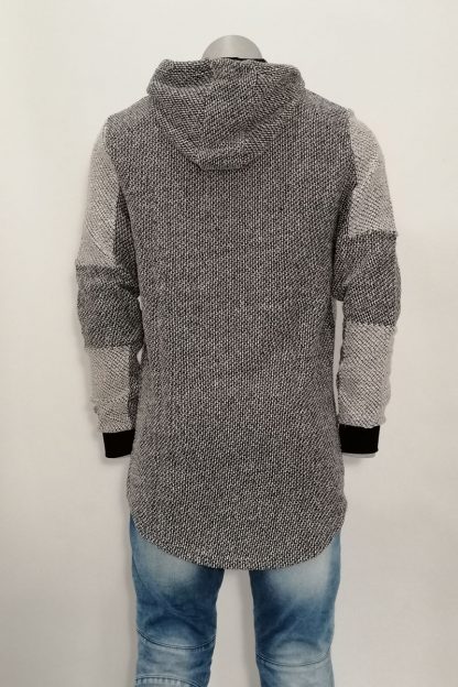 Muški kardigan sa kapuljačom sa zip kopčanjem. Duži kroj sa kraćim prednjim delom na kome su dva džepa sa detaljem u vidu crvenih vrpci na ziperima. Pleteni pamuk mu daje ležernu notu, tako da se ovaj kardigan uklapa u svakodnevni stil.
