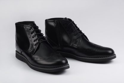 Cipele ručno izrađene od kože. Veoma atraktivan model u crnoj boji, sa crnim, sportskim đonom. Ovom kombinacijom boja i materijala cipele dobijaju na mogućnosti kombinovanja kako sa pantalonama klasičnog, tako i sa farmericama. Cipele imaju gel uložak i termo đon, te su pogodne i za svakodnevno hodanje.