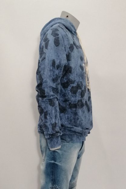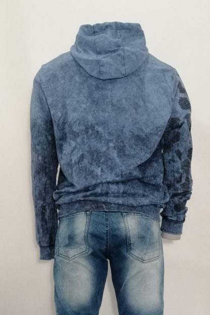Muška dukserica sa sa kapuljačom. Interesantno dezeniran materijal sa geometrijskim šarama. Na srednjem delu ima beli print koji mu daje posebnu notu gardskog užurbanog stila. Ova dukserica savršeno ide uz svetli Bastardo jeans.
